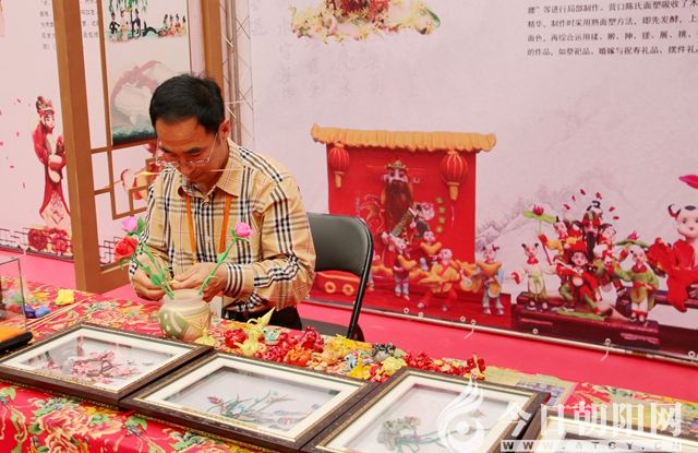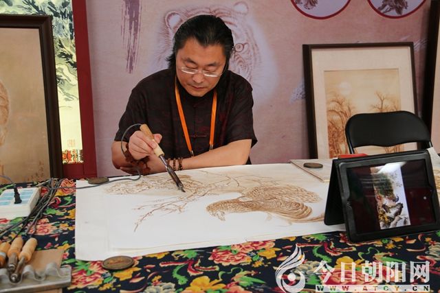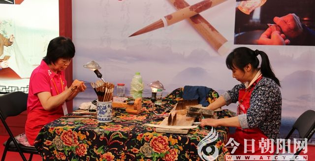 《今日朝陽(yáng)網(wǎng)》小編在現(xiàn)場(chǎng)看到,來(lái)自各地參展的非物質(zhì)文化遺產(chǎn)種類繁多,風(fēng)采獨(dú)具,星光熠熠。諸如:來(lái)自山西長(zhǎng)治的史延林傳統(tǒng)彩畫(huà)壁畫(huà)、來(lái)自桓仁的版畫(huà)、來(lái)自喀左縣的紅山泥人紫砂陶藝雕塑、來(lái)自朝陽(yáng)的燕派烙畫(huà)藝術(shù)、來(lái)自喀左的北陶紫砂、來(lái)自朝陽(yáng)的女神絨繡藝術(shù)、來(lái)自北票市的藝宏齋玉米皮烙畫(huà)、來(lái)自丹東市晶濤景泰藍(lán)文化產(chǎn)業(yè)有限公司的藝術(shù)品、來(lái)自朝陽(yáng)縣黑牛營(yíng)子鄉(xiāng)的遼繡、來(lái)自營(yíng)口的高氏木浮雕,以及金鼎玉雕、御用工坊、錦州面人張、振聲影雕、陳煥升琥珀雕刻、鐵石齊印譜、岫巖滿族剪紙等等文化、藝術(shù)精品,可謂琳瑯滿目、神采各異、美不勝收。