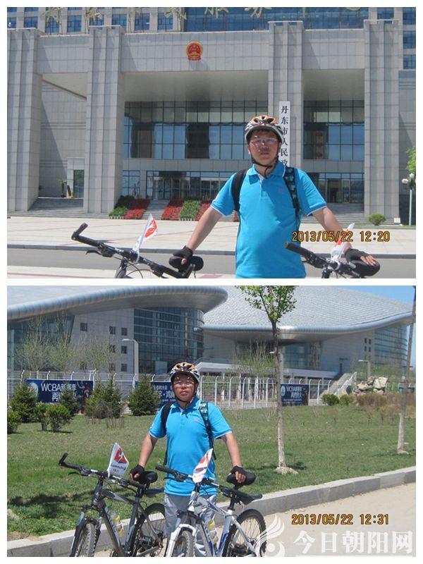 丹東新城是剛剛建立的新市區(qū),路面寬闊,高樓林立,廠房集中,但居民很少,問路更難。我們是邊走邊問,終于在中午12點多,找到了丹東市人民政府,這里距離丹東體育中心體育場一路之隔,騎行了近兩個小時,我們終于來了。