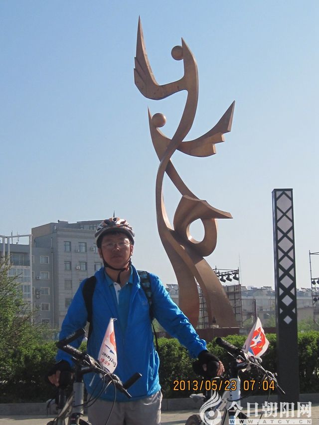 2014年5月23日一大早起床,吃過(guò)早餐,我們便從具有地標(biāo)性的鳳凰雕像前出發(fā)了。鳳城,一個(gè)和家鄉(xiāng)朝陽(yáng)很有淵源的城市,也是有“鳳凰”的印記,也有一座很有名的山,叫鳳凰山。昨天晚上7點(diǎn)多,在即將到達(dá)縣城之前,我們騎行路過(guò)鳳凰山門(mén),但時(shí)間緊急,沒(méi)有機(jī)會(huì)一睹風(fēng)采,不知山上是否也有塔、有寺,但肯定沒(méi)有鎮(zhèn)山的兩佛舍利。下次有機(jī)會(huì),一定登山領(lǐng)略它的雄奇險(xiǎn)峻。