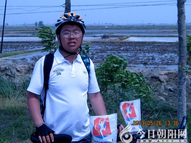 離開牛莊,下午的騎行在一派綠意盎然中行進(jìn)。道路兩旁的稻田里,水稻插秧正在緊張進(jìn)行,機(jī)器轟隆作響,秧苗一望無垠,似江南水鄉(xiāng),靈動而充滿生機(jī)。自行車前頭的全運(yùn)會旗迎風(fēng)飄揚(yáng),啪啪作響,構(gòu)成了一幅有聲有色的綠色畫卷。