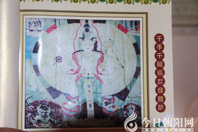 黑牛營子鄉(xiāng)“遼繡”最具代表性的作品,當屬朝陽縣民間刺繡珍品,宏觀寺鎮(zhèn)寺之寶——千手千眼十一面觀音繡像。千手千眼觀音繡像之精美曾令省中心專家震撼咂舌,并稱前所未見。據(jù)當?shù)厮嚾私榻B,此作品為關(guān)朝饒勒瑪喇嘛所繡。關(guān)朝饒勒瑪喇嘛是朝陽縣羊山人,其叔叔嘎布喳喇嘛曾九赴西藏,學習繪制佛像。他1916年在宏觀寺出家,15歲開始刺繡佛像,并得叔叔真?zhèn)鳌jP(guān)朝饒勒瑪喇嘛一生共刺繡1米以上佛像5幅,最大作品長2米,寬1.5米。后收徒弟噠利扎喇嘛,師徒二人以紡線、織布、刺繡為生,作品曾贈與西藏。1984年,首屆“遼西民間工藝美術(shù)展”期間,黑牛營子鄉(xiāng)章吉營子村宏觀寺住持的繡品“千手千眼佛”喜獲當年最佳獎殊榮。據(jù)當?shù)厝嗣枋觯鹣窭C圖《千手千眼觀音菩薩法像》長2米,寬1.5米,采用20尺緞子,2.8斤家蠶絲線繡制而成。在繡品制作過程中,老住持每繡一針頌一句佛,耗時近3年半時間才大功告成。整幅作品色彩靚麗,生動逼真,且工藝精美,栩栩如生。自1983年起,這幅刺繡佛像作為朝陽民間美術(shù)的代表作品多次參加全國、省、市民間美術(shù)展覽和出國展覽,并被國家文物局收藏。千手千眼佛繡品不但被《東北民族民間美術(shù)總集》刺繡卷收錄為首位前三幅,還被刊發(fā)在《中國非物質(zhì)文化遺產(chǎn)集錦》一書中,成為遼寧乃至全國民間繡品的代表作之一。