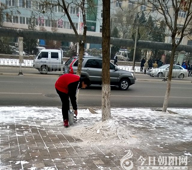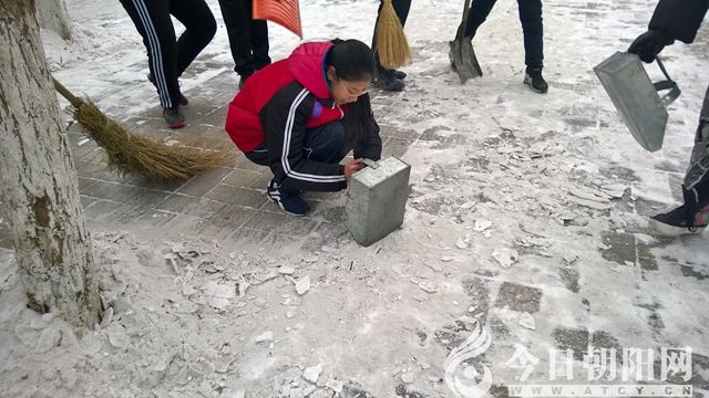 剛下過(guò)的雪,松軟好掃,等被行人踩硬了,結(jié)冰了,掃帚是用不上力了,只能用鐵鍬、銼子,開始的時(shí)候我只是用工具去平移著除雪,效果非常不好,根本鏟不動(dòng),為難之時(shí),平時(shí)不善言談的一名女生提示我,“老師,你看這樣,把銼子或鐵鍬立起來(lái),垂直去鏟,好弄多了”,我按她說(shuō)的辦法,工具垂直于雪面,用剁的方式,還別說(shuō),效果非常好,幾下,凍結(jié)實(shí)的雪就像鍋底的嘎巴,被剁了下來(lái),后面的工作掃帚就可以完成了,又省時(shí)又省力。