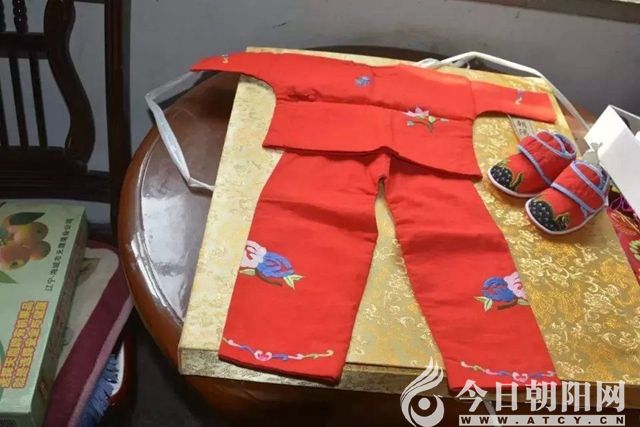 孫老師家潔凈的房間里,圓桌上,窗臺(tái)上,沙發(fā)上擺滿了大大小小色彩鮮艷的繡品。有繡著花的小孩衣服,紅色的虎頭鞋 ,花肚兜,煙荷包,枕頭頂,龍的繡飾就有十多種。