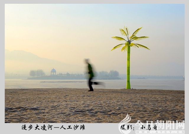 金色陽光,細(xì)軟沙灘,椰子樹,藍(lán)帆,這樣的景色,只有在南國的大海邊才能見,為此多少人千里迢迢候鳥一樣,飛向南國看風(fēng)景。智慧的喀左人,最能創(chuàng)造奇跡,建造了人工沙灘,運(yùn)來海邊的細(xì)沙,在龍源湖岸鋪就金色的沙灘,與寬廣碧綠的水,一望無際的藍(lán)天,構(gòu)成南國異域日光海岸的浪漫!冬日的金沙灘,蒙著一層白白的輕霜,很快就融化在陽光里,岸邊藍(lán)色的帆,是遮風(fēng)擋雨避暑消閑好地方,與大橋上的蒙古包,對岸的五星級“賓館”遙相呼應(yīng),每一種色彩,每一種建筑,都是獨(dú)具匠心,互相映襯,放眼,讓人感覺舒適,美觀,自然!夏日里的海灘,大人孩子光著腳嬉戲,享受海岸的浪漫!安居樂業(yè),如此!