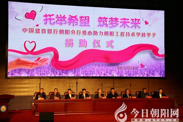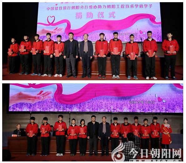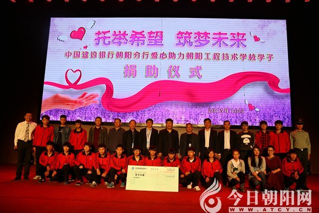 2015年10月20日,中國(guó)建設(shè)銀行朝陽(yáng)分行2015“龍卡助學(xué)金”發(fā)放儀式在遼寧朝陽(yáng)工程技術(shù)學(xué)校隆重舉行。工校20名貧困學(xué)生分別獲得1000元助學(xué)金。
