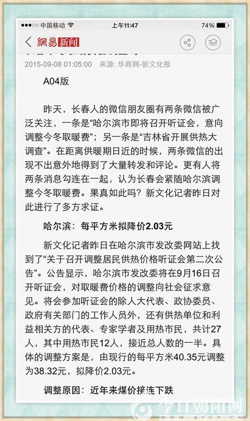 根據(jù)記者了解,哈爾濱早在今年9月初就發(fā)布了公告。哈爾濱今年的供暖價(jià)格從每平方米40.35元下調(diào)至38.32元,降價(jià)幅度為2.03元,而不是網(wǎng)傳的19元;市民關(guān)注的沈陽(yáng)供暖價(jià)格從28元調(diào)整為26元,下調(diào)幅度為2元,其中沒有單位報(bào)銷采暖費(fèi)的居民按每平方米23.3元收取,每平方米相差的2.7元由沈陽(yáng)市政府為供暖企業(yè)補(bǔ)貼(見媒體報(bào)道截圖)。