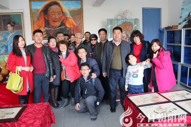 來自遼寧省及臺灣省學(xué)界、商界、政界人士在曹春偉創(chuàng)作室合影