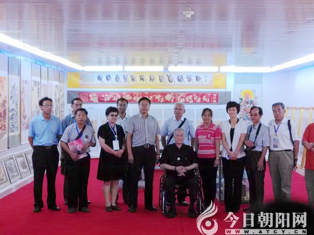 海峽兩岸紅山文化參訪團(tuán)部分成員在建平國美剪紙公司留影(王鑫提供)