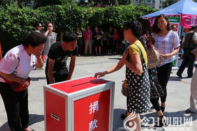 蘇大姐落淚的現(xiàn)場,在朝陽市政府門前的公共游園。此刻,一場主題為“黨群攜手·愛心圓夢”的義演義捐義賣獻(xiàn)愛心活動正在進(jìn)行。活動由朝陽市雙塔區(qū)光明街道黨工委主辦,“蘇大姐愛心志愿者團(tuán)隊”承辦,吸引了朝陽市便民服務(wù)中心等眾多單位、市民參加。