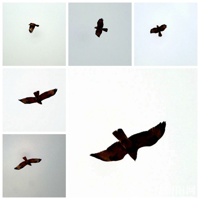 我曾在大凌河岸邊,欣賞過紅嘴藍(lán)鵲那美麗的長長的緞帶般的尾羽,聽過四聲杜鵑動聽的歌聲,欣賞過戴勝鳥頭上色彩斑斕的羽冠,太平鳥紅黃相間的花尾巴,可是那時都是轉(zhuǎn)眼即逝。今天卻不同,一只猛禽,長時間的徘徊,氣勢兇猛,但并沒有襲擊人的意思。通過近距離地與這只鷹接觸,使我真正體會到了人與自然如此得和諧。