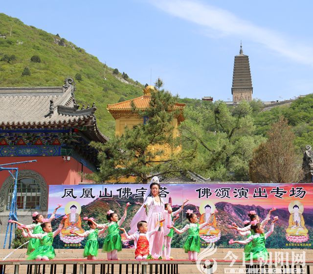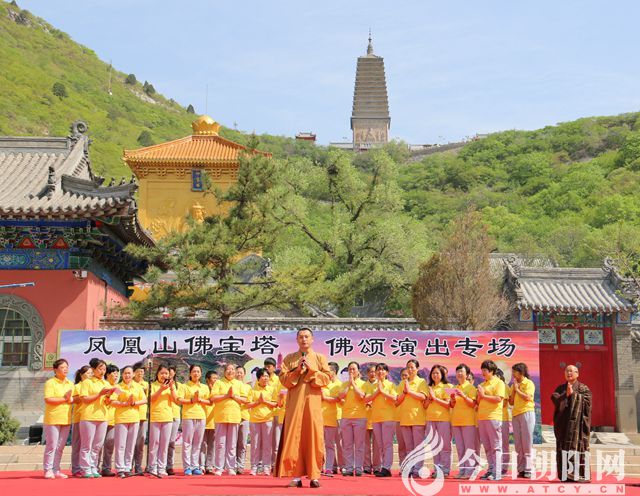 2015年5月3日上午,遼寧朝陽鳳凰山景區(qū)鐘鼓悠揚,祥云籠罩,寶塔巍峨,風鈴悅耳。來自全國各地的游客、香客,欣賞綠色美景,呼吸新鮮空氣,聆聽《佛頌》妙音,體悟修行樂趣,靜觀無邊山色,頓覺如登仙境,身心暢快,笑逐顏開。
