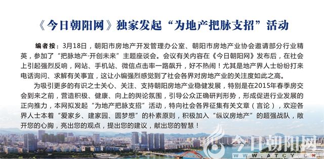 《今日朝陽網(wǎng)》“為地產(chǎn)把脈支招”系列文章之——