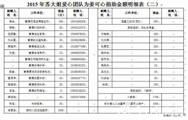 蘇大姐愛心團(tuán)隊(duì)為小可心籌到首筆善款