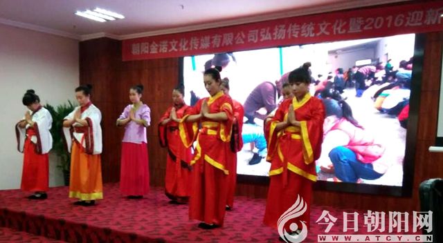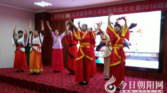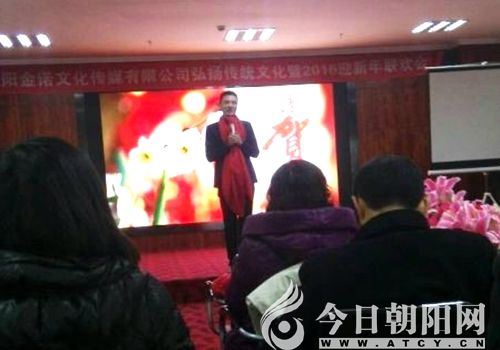 2015年12月28日下午,在遼寧省朝陽市朝陽金諾文化傳媒有限公司隆重舉辦了一場“朝陽金諾文化傳媒有限公司弘揚(yáng)傳統(tǒng)文化暨迎新春聯(lián)歡會”。參加本次活動的有朝陽金諾文化傳媒有限公司的全體職工,來自愛尚家居、怡然廣告公司等十多個企事業(yè)單位的法人代表、社會各界人士、傳統(tǒng)文化老師以及鐘愛傳統(tǒng)文化的善男信女等百余人。