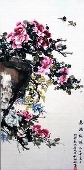 一個(gè)偶然的機(jī)會,他步入了業(yè)余畫家行列。1995年,朝陽市政協(xié)成立40周年,市政協(xié)舉辦委員和各界人士書畫展。為參加這次活動(dòng),他拿起多年沒摸的畫筆,利用業(yè)余時(shí)間如饑似渴地練習(xí)筆墨技法。畫什么呢?他琢磨:牡丹是天地之中的草木精華,自古被譽(yù)為“國色天香”,人們喜愛它的艷而不妖,香而不俗,那就畫牡丹吧。經(jīng)過半年時(shí)間的苦練,他滿懷激情地畫出了一幅牡丹圖,當(dāng)時(shí)就被評委選中展出,受到市、縣政協(xié)領(lǐng)導(dǎo)和參觀畫展人士的一致好評。他倍受鼓舞,更加堅(jiān)定了走一專多能道路的信心。