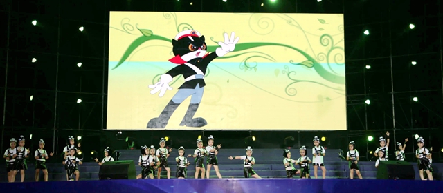 ——童趣盎然。既然是少兒節(jié)目,就要張揚(yáng)童心童趣?!讹w蹄聲聲》、《娃娃兵,兵娃娃》、《我愛地球》、《“兔”氣揚(yáng)眉》等節(jié)目,彰顯出童話般的幻想與美麗;《新學(xué)堂歌》更是根植于中華傳統(tǒng)文化的厚土,借助舞蹈的肢體語言,演繹了唐詩宋詞優(yōu)美的意蘊(yùn),引導(dǎo)孩子們將理想伸向遼闊的天空。舞蹈串燒《小貓咪》、《黑貓警長》、《小蘋果》讓觀眾忍俊不禁,拍手稱快。