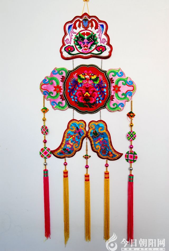 朝陽繡花女,一針一線總關(guān)情;朝陽新遼繡,千紅萬紫闖世界!