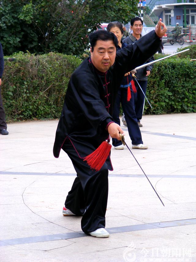 鄒本海早在朝陽(yáng)市區(qū)“五一街”住時(shí),開(kāi)始在南塔邊自己練,漸漸地吸引了想學(xué)太極拳和太極劍的人,熱心腸的他便義務(wù)地教了起來(lái),來(lái)學(xué)的人也越來(lái)越多,各行各業(yè)的人士都有。4年前他搬到新客運(yùn)站附近居住,換了運(yùn)動(dòng)場(chǎng)地,人生地不熟,開(kāi)始都是自練,練來(lái)練去又有人上心了,由開(kāi)始看他練到主動(dòng)找他教,他總是來(lái)者不拒,認(rèn)為只要大家愿意學(xué),達(dá)到全民健身的目的就行。教了一段時(shí)間,大家看他辛苦,提出他應(yīng)該收點(diǎn)學(xué)費(fèi),或請(qǐng)他吃飯,他都一一拒絕了,他說(shuō):“你們別請(qǐng)我吃飯,我?guī)湍銈兂龊咕托?,要給錢(qián)就不教了。”所以來(lái)學(xué)的人越來(lái)越多,學(xué)員來(lái)自各行各業(yè),有離退休的、有在職的,有法人代表,有個(gè)體工商戶(hù),年紀(jì)最大的79歲,最小的30多歲,現(xiàn)在已發(fā)展到50多人,經(jīng)常堅(jiān)持練的有20多人。