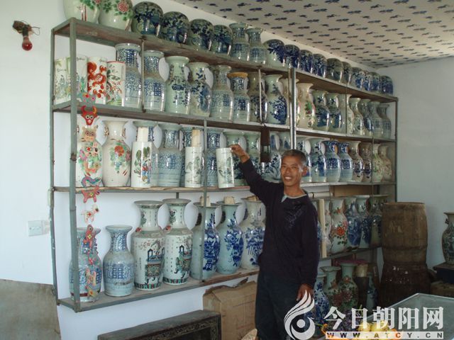 精明的張立輝在收藏的過程中不斷地積累經(jīng)驗,每一件舊物在他的眼里都能看出其市場價值和前景。在走街串巷收購中,他耳聽眼看,不放過任何一個商機,每次都是滿載而歸。他通過搜集信息了解到,現(xiàn)在仿古建筑很多,為了讓仿古建筑物更加貼近那個年代,內(nèi)外的擺設需要過去的物品,而現(xiàn)代的仿古物件讓人看上去有失真的感覺,達不到理想的效果。這樣一來,經(jīng)營者便想到要收買古物裝點仿古建筑物。張立輝看到這個市場需求有很大的利益空間。他多方聯(lián)系尋銷路,以銷定收,從偏遠鄉(xiāng)下收到的石器和老式家具很受歡迎,許多外省市的客商都驅(qū)車趕到朝陽來買他的收藏品。有的大學教授為了給所學專業(yè)的學生購買古瓷器,數(shù)千里和他電話聯(lián)系探討收購事宜,他名副其實地成了村里的大忙人。