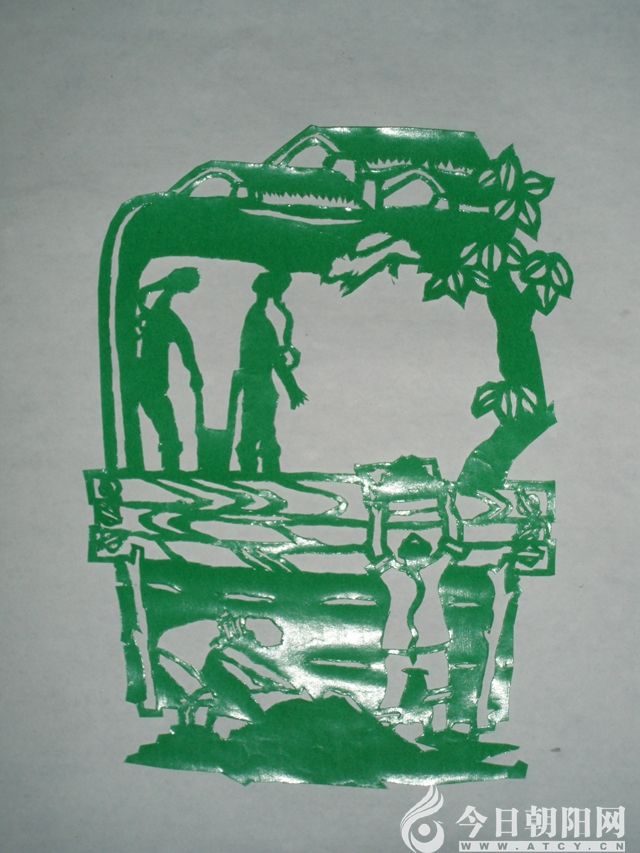 韓秀雙從小和奶奶生活在遼寧省朝陽縣七道嶺鄉(xiāng)沙金窩鋪村,她的奶奶是當(dāng)?shù)剡h近聞名的剪紙高手,父親韓貴華多才多藝,擅長剪紙和刻影人。韓秀雙在奶奶身邊耳濡目染,很小就學(xué)會了剪紙技藝,8歲就有鄉(xiāng)鄰上門求剪。幼年患的一次中耳炎導(dǎo)致她雙耳失聰,但沒有影響她對剪紙藝術(shù)地學(xué)習(xí)和探索。韓秀雙的特色剪紙是以傳統(tǒng)的工具和手法來反映身邊生活的民間藝術(shù),具有典型民俗文化傳承的特點。她的《孔雀牡丹》是比照過去老柜鏡子上的圖案創(chuàng)作的;《玉鳳耀羽》是照著線毯上的圖案剪的。父親和奶奶看見哪里有適合剪紙的圖案就搜集給韓秀雙,身邊的生活場景和各種圖案都是她剪紙的素材。