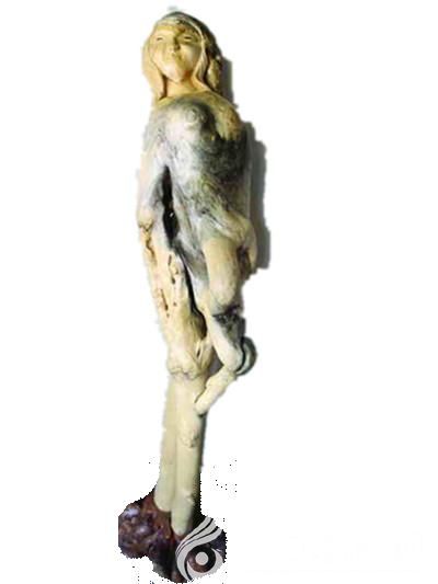 杜國昌只有初中文化,他的知識和閱歷為他構(gòu)建了窄小的思維空間。剛開始接觸這門藝術(shù),他完全是出于一種愛好,覺得搞根雕有趣兒,對自己沒有更高的標準和要求,現(xiàn)在看來確實走了一段彎路。后來,隨著一件件根雕作品的問世,他相繼結(jié)識了一些書法家、攝影家和作家朋友,他們的見識使他大開眼界,在他眼里這些不起眼的作品藝術(shù)價值頓時大增,覺得非同一般,他也更加熱愛根雕藝術(shù)。在他的作品中,“圣女”“天使魚”、“鷹”、“蛇人鮮”、“雙人舞”、“黑熊”、“犀牛望月”等選材得當,構(gòu)思獨特,寫意成份很重,給人以出乎意料的感覺,讓觀者大飽眼福。朝陽市著名書畫家葛忠前來觀看后很是贊賞,為他的工作室題名“閑逸木屋”。