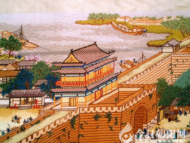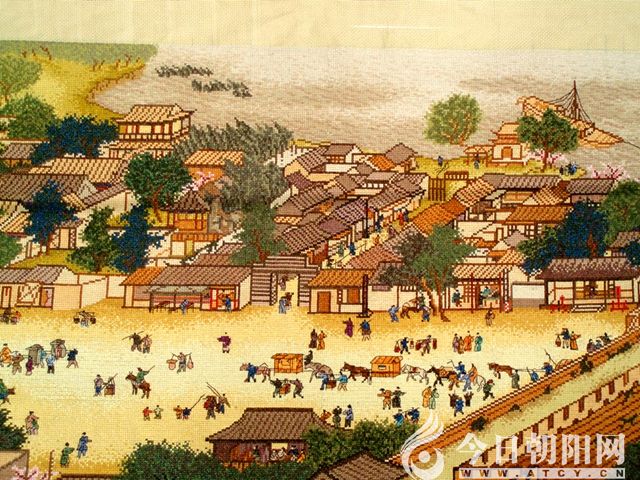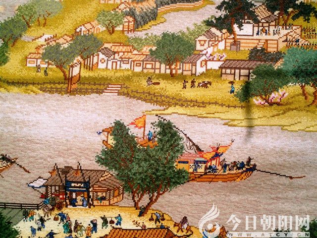 太陽升起來后,家里人吃過早飯都去做各自的事情,步入中年的農(nóng)家女劉海云立馬坐到炕上,輕輕捏起繡針,繡手靈活地在布匹上下翻轉;當家里人吃過晚飯后,她又接著在每天只繡豆腐塊兒大面積的作品上繼續(xù)穿針引線。就這樣一日復一日,一月復一月,在經(jīng)過11個月的精心付出后,她這雙巧手終于繡出了6米長的十字繡《清明上河圖》,被當?shù)卮迕駛鳛榧言挕?/span>