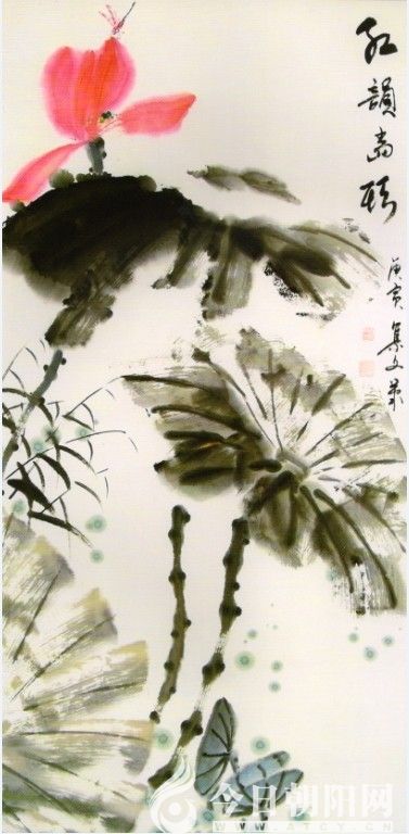 作為一位年逾花甲的畫家,鄧集文依然每日筆耕不輟。在近日創(chuàng)作的《荷韻》中運筆更加豪放厚重,這種新氣象讓我們看到了他不凡的探索精神。我們相信,他的作品會越來越成熟,他的名字將成為朝陽的驕傲。
