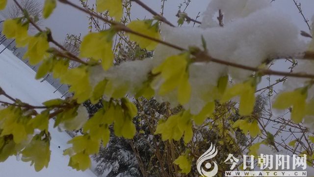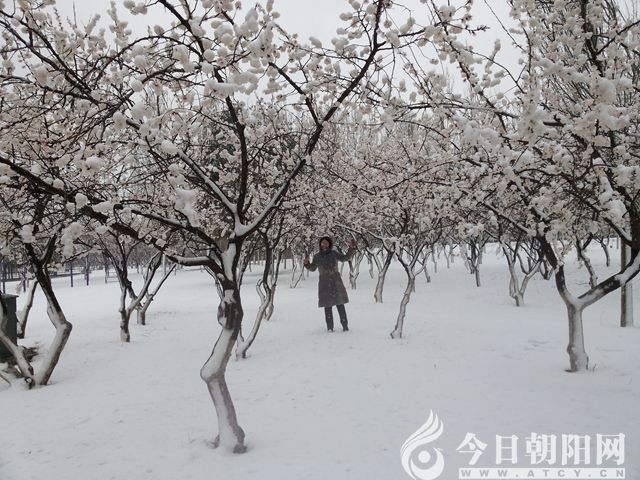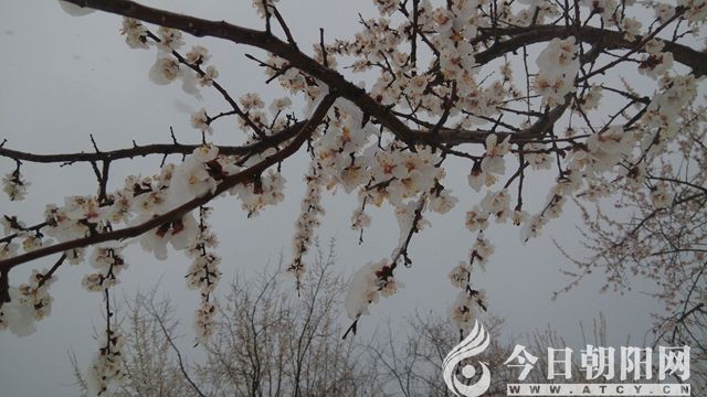 2015年4月12日,遼西地區(qū),飛雪連天,長風浩蕩。萬山千嶺,頓化銀蛇白蟒。正在恣肆盛開的春花,毫無思想準備,忽然被這反季節(jié)、沒正形、無厘頭、太任性的風雪擁吻,瞬間凝固成了晶瑩剔透的冰雪鮮花。敢問天下才子誰能唱和朝陽奇文