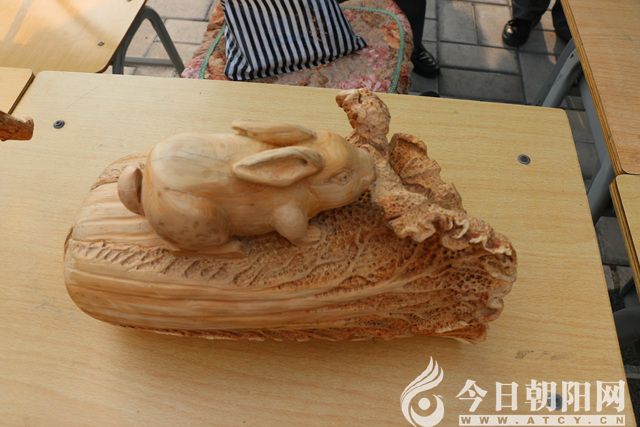 下面這幅作品是用崖柏雕制的擺財(白菜)與免,供料人屬兔,王志敏師傅就依勢就形創(chuàng)造了這幅形象生動、寓意吉祥的雕刻作品。