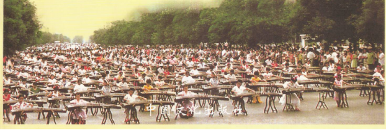 2002年6月,朝陽市人民政府決定主辦“2002中國海外學(xué)子創(chuàng)業(yè)周”暨“朝陽古箏藝術(shù)節(jié)”活動(dòng),任務(wù)落在朝陽市文聯(lián)。在市文聯(lián)薩仁圖婭主席的帶領(lǐng)下,于6月23日在新華廣場(chǎng)舉行開幕式。李連生老師的中老年古箏學(xué)習(xí)班、趙偉古箏藝術(shù)學(xué)校、張亞群古箏學(xué)校、雷新宇古箏學(xué)校、左笑然古箏學(xué)校、劉國忠古箏學(xué)校、孫桂華古箏學(xué)校、董大穎古箏培訓(xùn)班等機(jī)構(gòu),200多箏手齊奏《漁舟唱晚》。隊(duì)伍之龐大,陣容之壯觀空前絕后。6月24日,在南塔廣場(chǎng)、佑順?biāo)麻T前、北塔廣場(chǎng)、凌河公園門前,都有古箏演奏。晚19點(diǎn)30分,在新華影劇院還舉辦了新型古箏演奏會(huì)。