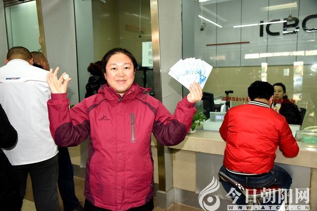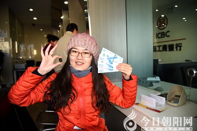 下圖為預約客戶在該行朝陽分行營業(yè)網(wǎng)點兌換后高興地舉起紀念鈔(幣)向身邊排隊客戶展示。