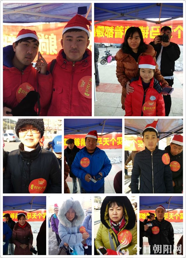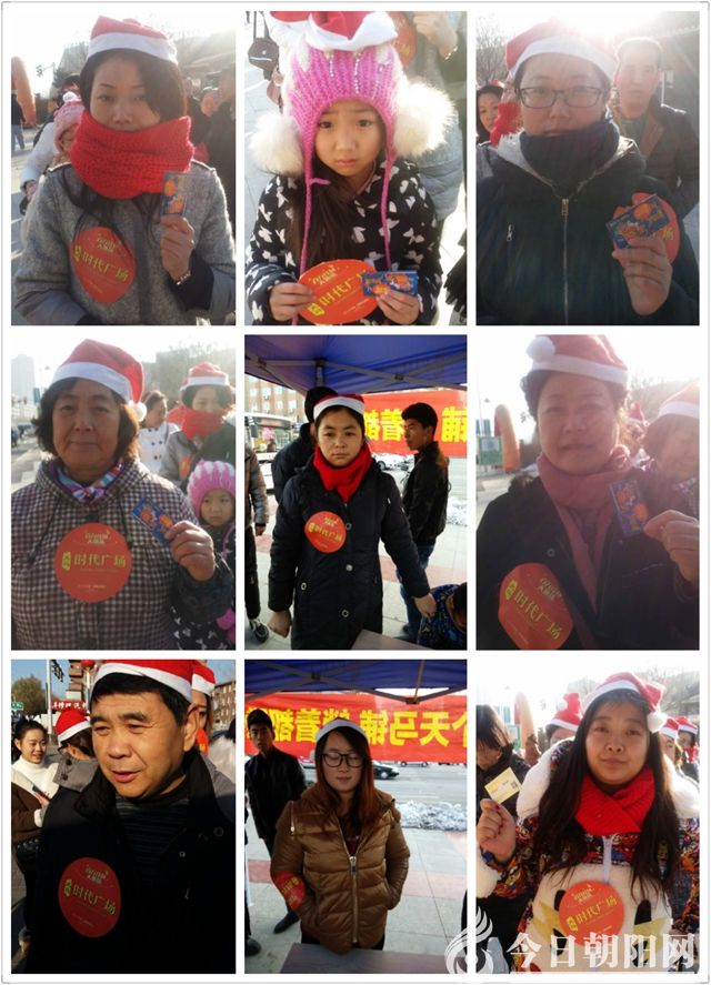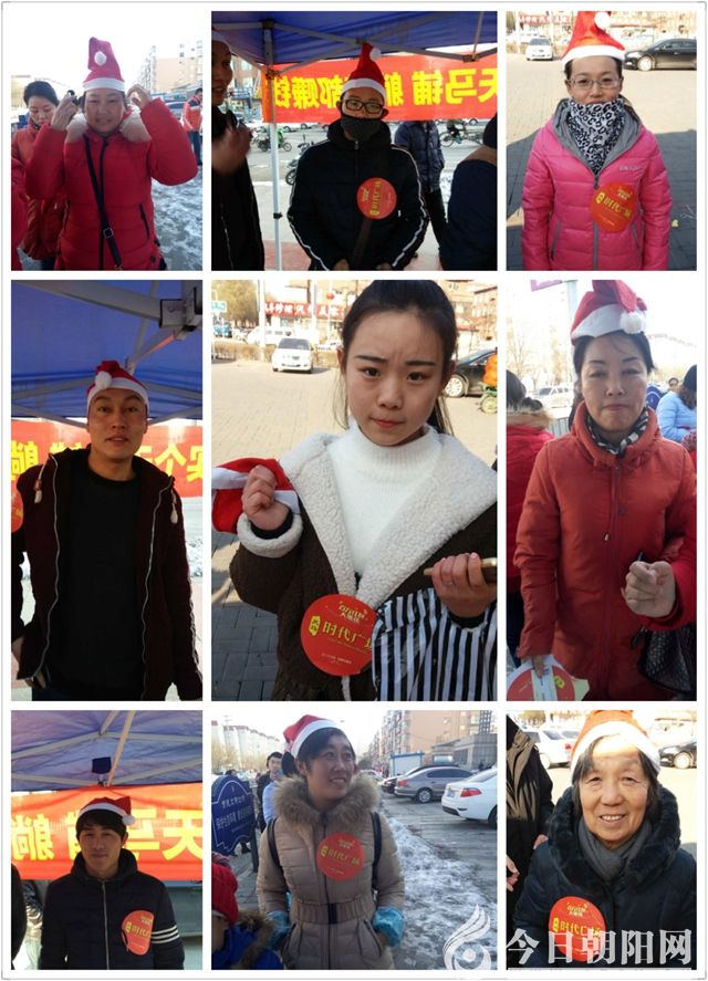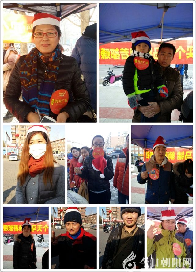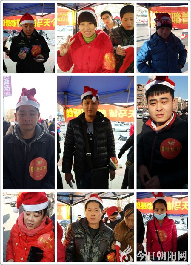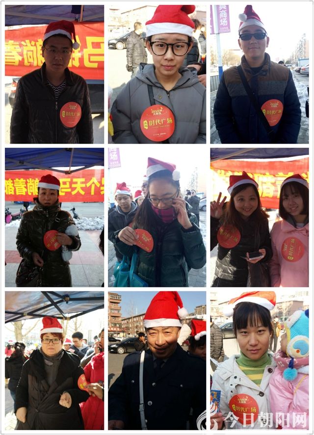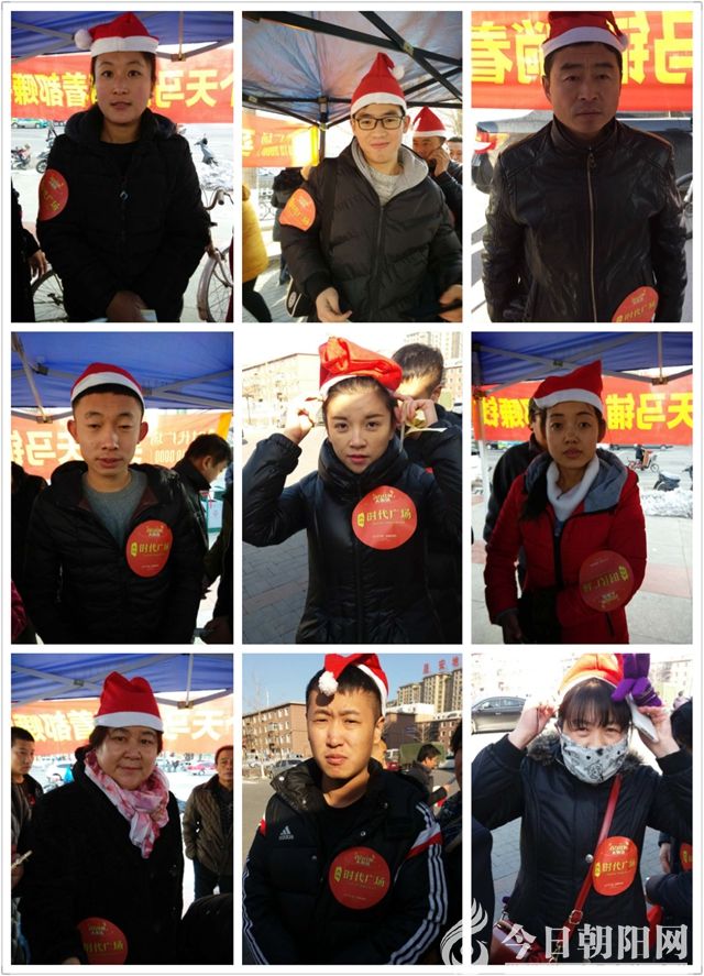 2015年12月5日,星期六。遼寧朝陽,迎來入冬后一個難得的好天氣——陽光足,冷風(fēng)輕,天宇藍(lán)。當(dāng)天上午,100位“圣誕老人”再次出現(xiàn)在古城大街上,開啟了天馬·時代廣場以“全城問計筑天馬·國企感恩謝朝陽”為主題的新一輪“百萬紅包大派送”活動。