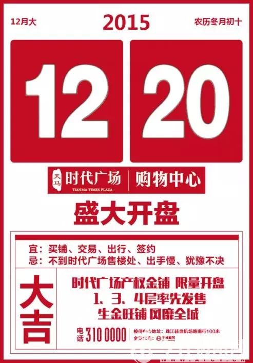 時(shí)代廣場(chǎng)產(chǎn)權(quán)金鋪12月20日限量開盤啦!1、3、4層率先發(fā)售!數(shù)量有限,搶鋪要抓緊哦!