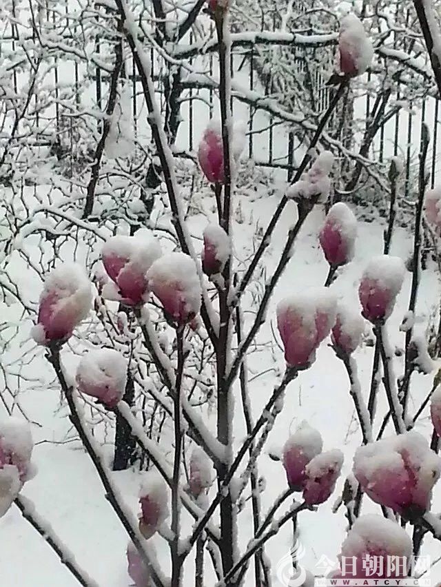 有一天看到網(wǎng)友發(fā)了一組紫色玉蘭花,好羨慕。一打聽(tīng)就在勝利橋附近。我找到了,在市環(huán)衛(wèi)局對(duì)面的小區(qū),北塔春餅店后院。這是一戶愛(ài)花人自己買來(lái)栽植的,據(jù)說(shuō)一棵樹(shù)苗花了4000塊錢(qián),買了三棵,只活了兩棵。那棵大的二層樓高,含苞的紫紅玉蘭直挺在枝頭,還真有點(diǎn)像紅棉樹(shù)。2015年正值花開(kāi)季節(jié),下了一場(chǎng)大雪,可憐一朵朵美麗的花,一夜間被冰雪摧毀了嬌容,讓人好心疼??!