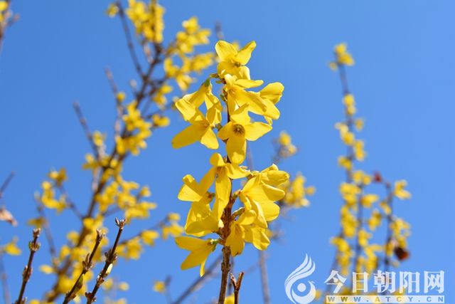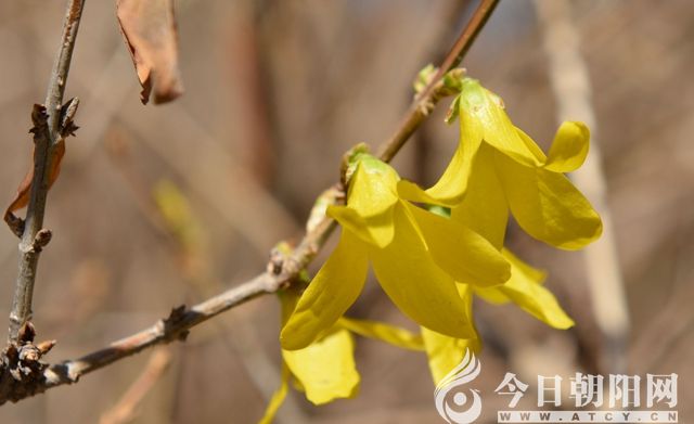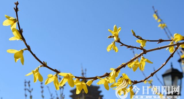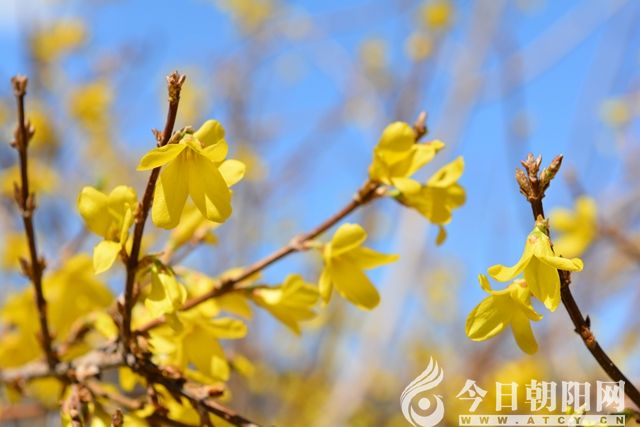 朝陽城里,連翹花栽種的比較普遍,小區(qū)內(nèi),公園里,街路邊,這一叢,那一片,幾乎放眼既見。