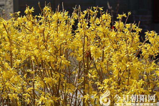 連翹花美,在朝陽本地多是人工培育,除了市區(qū),鄉(xiāng)村人家也有栽植。鄉(xiāng)村人家的連翹,并不成片,往往是單獨一叢,倚在石墻邊,立在籬笆下,春陽和煦,暖著石墻,晃著籬笆,嫩黃的連翹在陽光里燦然開放,給農(nóng)家小院平添一份別樣的春的氣息。