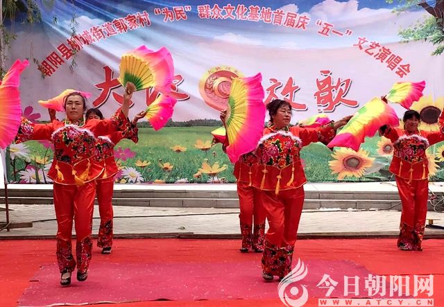 4月26日,在遼寧省朝陽縣柳城街道郭家村文化廣場,伴隨著《大地放歌》的熟悉旋律,平均年齡在60歲以上的一群大媽們跳起了歡快的舞蹈。這是郭家村“為民”藝術(shù)基地為了喜迎 “五一”而舉辦的首屆文藝演出。