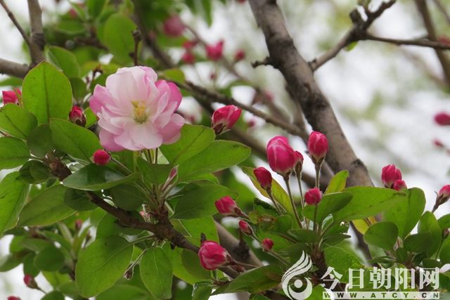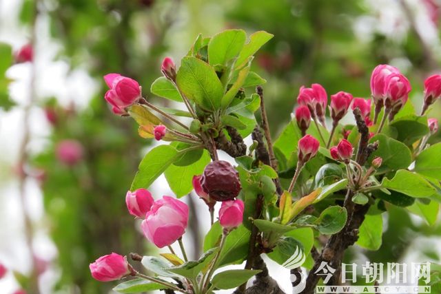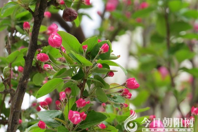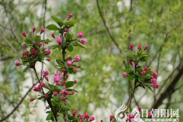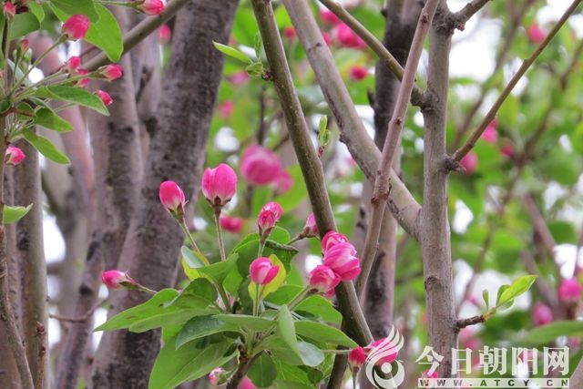 朝陽海棠花“小蕾深藏數(shù)點紅”的狀態(tài),大致是在陽歷四月上旬稍靠后一些的時候,而那時朝陽城里的玉蘭、山桃、連翹早已開過,杏花、李花、榆葉梅則開得正盛,的的確確正“鬧春風”呢!