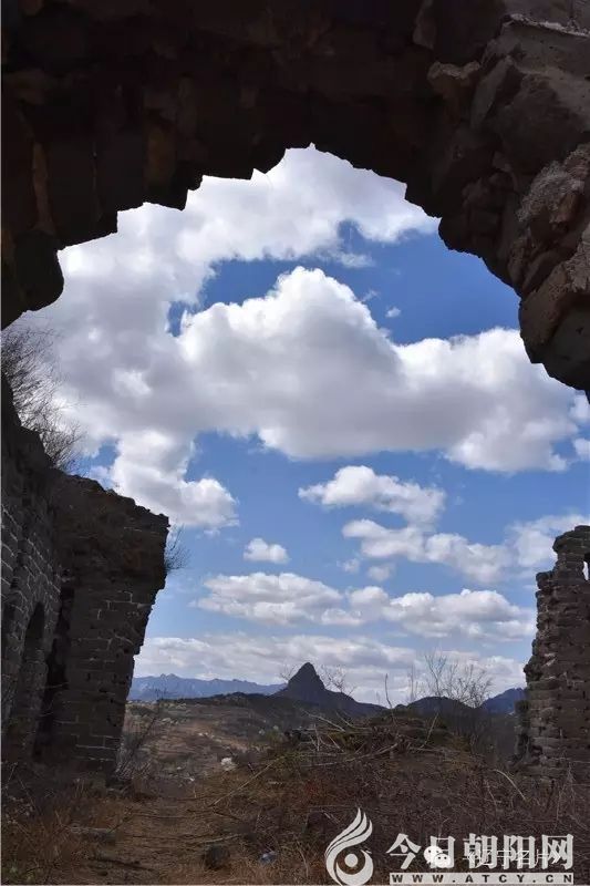 古長城廢墟之上,雖然晴空萬里陽光明媚,卻有朵朵祥云繚繞。古月照今朝,日月輪轉(zhuǎn),萬里長城今猶在,見證著時代更迭,歲月穿梭。撫今追昔,稀疏流離的明代古長城歷盡蹉跎歲月,令人充滿懷古情懷。