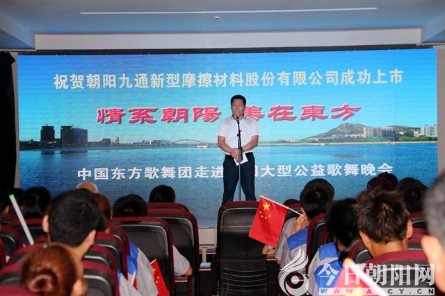 7月12日下午,中國東方歌舞團走進朝陽,以“情系朝陽·美在東方”為主題,熱烈祝賀朝陽九通新型摩擦材料股份有限公司成功上市。演員們以飽滿的熱情,高超的才藝,演繹了情系東北老工業(yè)基地、關(guān)愛朝陽人民的樸素情懷。九通公司董事長閆久龍在言簡意賅的致辭中,表達了務(wù)實進取、再接再厲、共克時艱、勇攀高峰的誠摯心愿,引起了多家新媒體的密切關(guān)注。