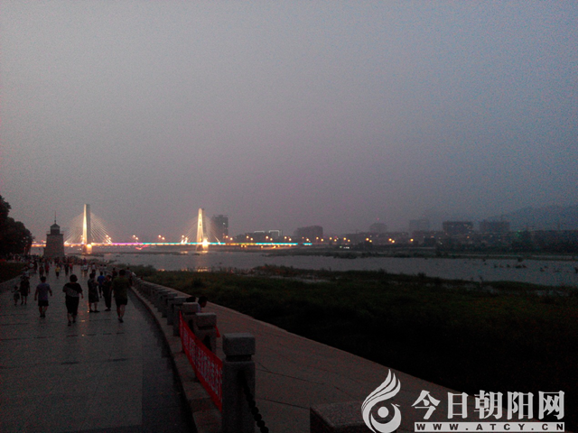 在朝陽,晚上散步的地點(diǎn)似乎首選就是大凌河畔。自己去有點(diǎn)無聊,就動(dòng)員母親一起走走,母親說大凌河“很饞”,今年已經(jīng)淹死了好幾個(gè)人了,不僅自己不去,還勸我也別去。我是不相信這些的,好好的一個(gè)人,怎么會(huì)見了水就莫名其妙地跳下去呢?生命是多么可貴?。∥矣謩?dòng)員孩子,孩子也不去,他說要在樓下和同伴們一起玩。沒辦法,那就自己去吧!