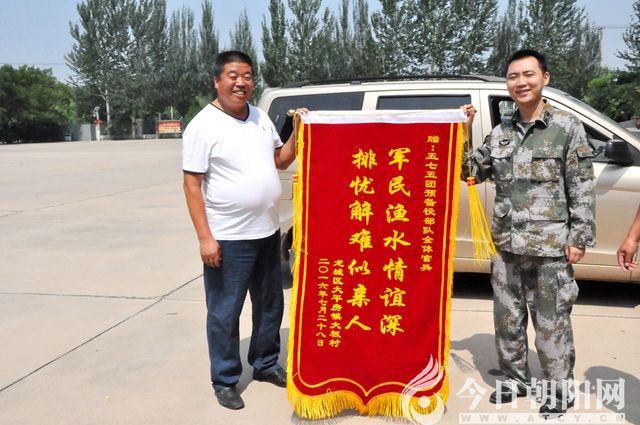 7月28日,在“八一”建軍節(jié)即將到來之際,遼寧朝陽龍城區(qū)大平房鎮(zhèn)大板村“兩委”班子隨同鎮(zhèn)領(lǐng)導(dǎo)一起,到預(yù)備役575團(tuán)慰問了人民子弟兵,為部隊(duì)官兵送去了500多斤鮮魚和一面寫有“軍民魚水情誼深,排憂解難似親人”字樣的大紅錦旗,表達(dá)了濃濃的擁軍情懷。