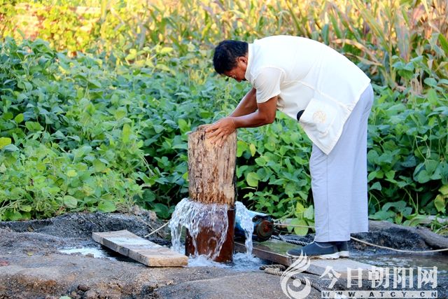 2016年8月8日,他請(qǐng)來(lái)北票市泉巨永鄉(xiāng)一個(gè)以“涌泉”命名的專業(yè)鉆井隊(duì)。早晨7點(diǎn),準(zhǔn)時(shí)開(kāi)鉆。依靠先進(jìn)的鉆井設(shè)備,65米深、直徑30厘米的機(jī)電井,一個(gè)半小時(shí)就成井了。當(dāng)時(shí),噴涌而出的水柱“躥”起一人多高,讓現(xiàn)場(chǎng)的人全愣住了。