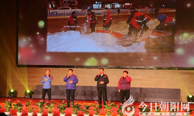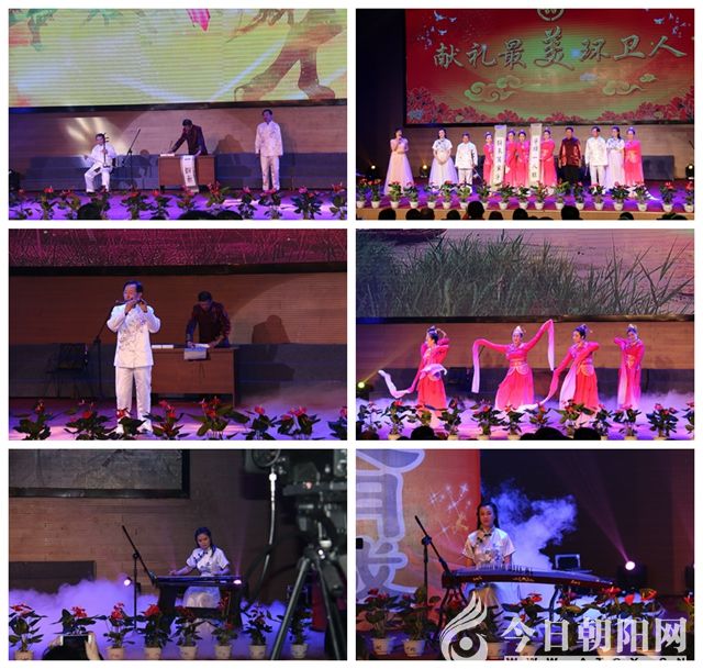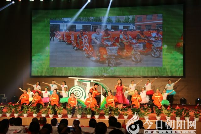 會(huì)議結(jié)束后,專場(chǎng)文藝演出在朝陽(yáng)市環(huán)衛(wèi)局舞蹈隊(duì)表演的《花開(kāi)千萬(wàn)家》中拉開(kāi)了帷幕。依次演出了環(huán)衛(wèi)系統(tǒng)各單位精心準(zhǔn)備的14個(gè)節(jié)目。其中,舞蹈《最炫小蘋(píng)果》、小品《公廁保潔員的一天》、情景歌舞表演《美麗心靈》等節(jié)目的取材,均來(lái)源于真實(shí)的故事。這些節(jié)目充分體現(xiàn)了環(huán)衛(wèi)工人不怕苦、不怕累的精神,和在平凡的崗位上以扎實(shí)的工作、默默的勞動(dòng)實(shí)現(xiàn)自己人生價(jià)值的高尚情懷。小品《圓夢(mèng)》,講述了政府有關(guān)部門(mén)幫助環(huán)衛(wèi)女工的孩子(單親家庭)上大學(xué),孩子表示畢業(yè)后也加入環(huán)衛(wèi)工人隊(duì)伍的感人故事,深深感動(dòng)了在場(chǎng)的觀眾。