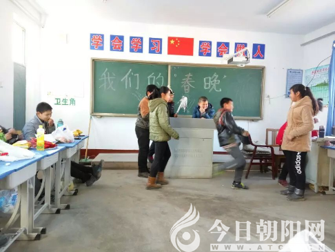 最值得一提的是“春晚”重頭戲“團(tuán)拜”活動,不置身其中你很難體會到那幸福的情景。譬如,正月初一,在你小的時候在家里盼著別人到你家拜年,抑或是看到一群男男女女遠(yuǎn)遠(yuǎn)地來了,你高興地喊你父母的時候,那是怎樣的一種激動,一種歡快啊——這時的你就是那種感覺。我們的團(tuán)拜是各個年級選出一個節(jié)目,帶上同學(xué)們的祝福到各班去表演。參與團(tuán)拜者的幸福感會掛在一張張紅紅的臉頰上,迎接的人也滿懷幸福,因?yàn)樗麄兪斋@了來自不同班級的祝福。孩子們還興奮地把自家?guī)淼墓献?、糖果送給低年級的小弟弟、小妹妹,把老師都帶入了過年的甜美之中。你看三年級的小同學(xué)為我們表演的節(jié)目,三個小姑娘演得多投入啊!