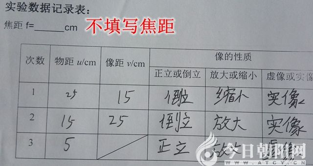 解決方案:拿到實(shí)驗(yàn)記錄單后,先寫(xiě)焦距(實(shí)驗(yàn)用的凸透鏡焦距為10cm)