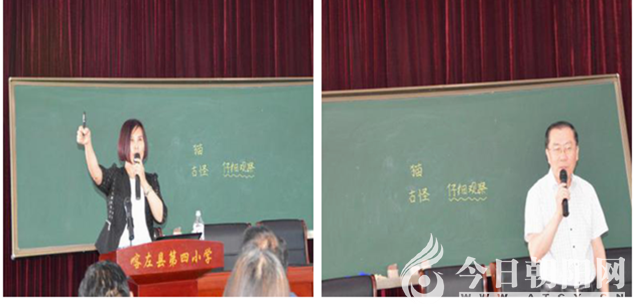 現(xiàn)場(chǎng)會(huì)上,喀左四小師生向與會(huì)人員展示了“語文主題學(xué)習(xí)”給學(xué)校帶來的勃勃生機(jī),彰顯了師生語文素養(yǎng)大幅提升、內(nèi)涵日益豐富的盛況。一天的現(xiàn)場(chǎng)會(huì),與會(huì)人員走進(jìn)了該校28節(jié)一至五年級(jí)的開放課堂,看到了語文課堂上各年級(jí)學(xué)生增量閱讀的教學(xué)現(xiàn)狀,欣賞了誦讀課和讀書匯報(bào)交流,集中觀摩了低中高年段的四節(jié)展示課。觀看了3000多人的集體配樂誦讀,觀看了每天10分鐘班班習(xí)字訓(xùn)練,聽取了校長郭子巖的經(jīng)驗(yàn)介紹。同時(shí),聽了學(xué)院小教部語文研訓(xùn)員鄭秀華老師做了專題講座。