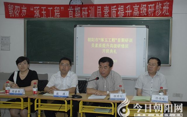 開班儀式(大連教育學(xué)院教師教育辦公室劉金華主任 大連教育學(xué)院張濤書記 朝陽進(jìn)修學(xué)院程希印院長 佟英峰 朝陽進(jìn)修學(xué)院副書記)