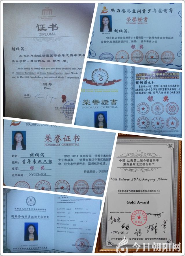 她還努力學(xué)習(xí)文化課,以全系第一的好成績(jī)榮獲2014—2015學(xué)年一等獎(jiǎng)學(xué)金。專(zhuān)業(yè)課上,她也非常出色,先后參加各類(lèi)鋼琴比賽。在2014魅力香港亞洲青少年藝術(shù)節(jié)選拔賽中榮獲銀獎(jiǎng),同年在優(yōu)秀藝術(shù)特長(zhǎng)生藝術(shù)盛典中獲專(zhuān)業(yè)組銀獎(jiǎng)。在2015年第八屆CAGC中華藝術(shù)環(huán)球大賽榮獲西樂(lè)組銀獎(jiǎng),在2015勃蘭登堡國(guó)際音樂(lè)比賽中榮獲優(yōu)秀獎(jiǎng)。