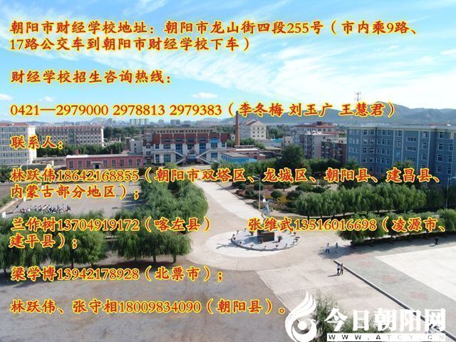 特別提示:學(xué)生及家長可登陸今日朝陽網(wǎng)(http://www.dztb777.com/),在朝陽財經(jīng)學(xué)校專題(欄)(http://www.dztb777.com/index.php?m=special&c=index&specialid=1)了解該校更多信息。